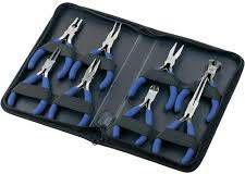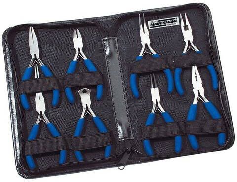 - Deze set bevat 8 mini-tangen met antislipgreep, geslepen kop en inwendige veer.
