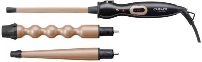 De Carmen CT6525 krultang is een krultang met drie verschillende diameters geschikt voor het creëren van slag of krullen in je haar. Dankzij de Carmen CT6525 heb jij de keuze uit drie verschillende opzetstukken van Ø 10 mm, Ø 13-2.
