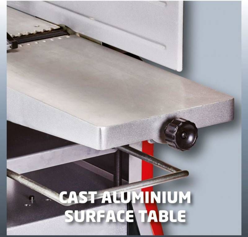 Deze Einhell stationaire schaafmachine TC-SP 204 is een hoogwaardige machine voor precies en snel vandiktebank en oppervlakte schaven. Het wisselen tussen de vandiktebank en oppervlakte schaafmodus wordt in slechts een aantal stappen en een druk op de modusselectieknop gedaan. De parallel stop is gemaakt van aluminium en is eindeloos aanpasbaar van 0° tot +45°. De machine heeft een slinger met meetapparaat voor makkelijke en nauwkeurige aanpassingen van de vandiktebank schaaftafel. Het stevige basisframe is erg stabiel. De vandikte schaaftafel met uittrekbare werkstuk steunen is makkelijk in gebruik. De praktische spanenafzuiging zorgt voor een schoon werkgebied. de AAN/UIT schakelaar heeft nulspanning ontgrendelfunctie, dit zorgt ervoor dat de machine niet onbedoeld start na een stroomstoring.