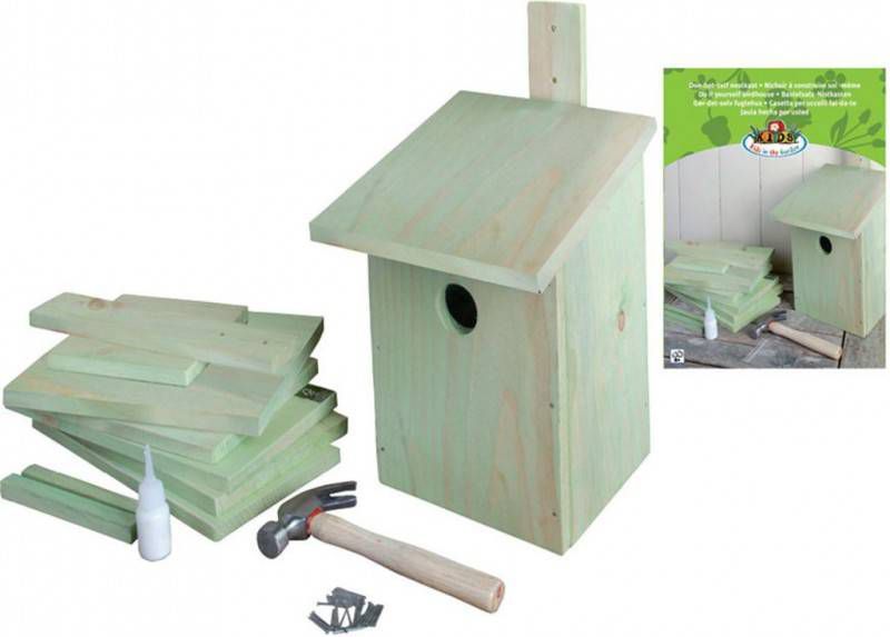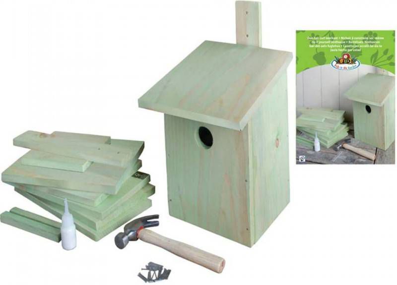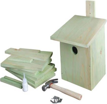 Het nestkastje is geheel in elkaar te spijkeren en deels te verlijmen met de meegeleverde spijkers hamer en houtlijm. Deze nestkast is geschikt voor de koolmees. Behalve de koolmees kunt u ook de pimpelmees, de ringmus en de bonte vliegenvanger in deze kast verwachten.