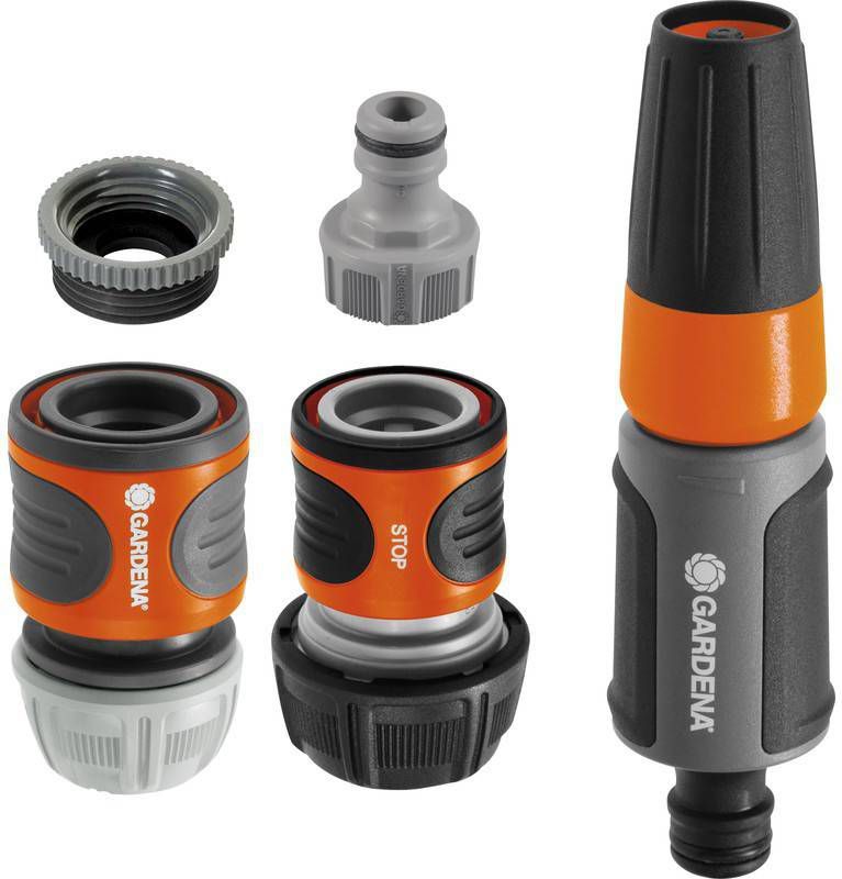 Gardena Startset Tuinslang AansluitingenDe Gardena startset bevat een kraanstuk met adapter, een slangstuk, een waterstop en een tuinspuit. Met deze set heb je alle benodigde Original Gardena System armaturen en een verstelbare tuinspuit en kun je direct aan de slag met je tuinslang. * Te gebruiken in combinatie met de Gardena tuinslang * Set van 4 opzetstukken * Startset.