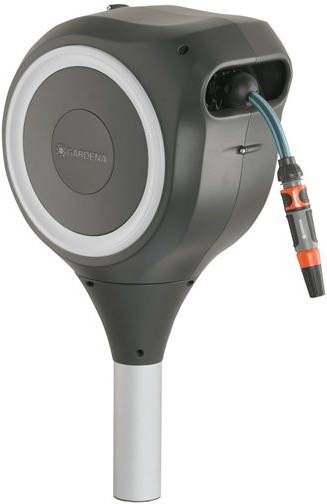 Bijzondere kenmerkenBewatering die altijd gebruiksklaar is: De GARDENA slangenbox RollUp S is geen gewone opbergruimte voor slangen. Met deze goed ontworpen slangenbox kan je moeiteloos jouw tuin bewateren. Je kan jouw kleine tuin eenvoudig bewateren met maximale bewegingsvrijheid. Hij staat op een stevige metalen pen, zodat je hem overal in jouw tuin kunt plaatsen zonder een muur te beschadigen. De grondpen wordt met een montagestang in de grond geschroefd en is daarom extreem stabiel. Voor gebruik hoef je de tuinslang alleen maar uit te rollen tot maximaal 15 meter en kan je meteen beginnen met bewateren. Dankzij de ingebouwde korte vergrendelingspunten kan je de slang moeiteloos hanteren en automatisch op de gewenste lengte afrollen. Door het innovatieve ontwerp kan de slangenbox 360 graden worden gedraaid en kan je elke hoek van jouw tuin bereiken. De slangenbox volgt jouw bewegingen tijdens het bewateren en voorkomt dat de waterslang knikt of in de war raakt. Bovendien maakt deze slangenbox het lastige oprollen overbodig, hoef je niet te bukken en blijven jouw handen schoon en droog: door kort aan de niet gerolde slang te trekken wordt de geïntegreerde veer geactiveerd, die de slang volledig automatisch en betrouwbaar oprolt. Om blokkades of verdraaiingen te voorkomen houdt een slanggeleider de tuinslang op zijn plaats en zorgt de RollControl-technologie voor veilig en gecontroleerd oprollen. De box is afgesteld op de hoogte van de GARDENA robotmaaiers, zodat het gazon rond de slangenbox altijd wordt onderhouden en gemaaid. Het hoogwaardige materiaal biedt bescherming tegen UV en vorst, de box kan het hele jaar door in de tuin blijven en staat borg voor een lange levensduur en gebruik zonder onderhoud. De box is zeer compact enstijlvol ontworpen, zodat deze eenvoudig in elke tuin kan worden geïntegreerd. De slangenbox wordt geleverd met een flexibele aansluitslang, alle benodigde montageonderdelen, de Original GARDENA System elementen en een sproeier met twee verschillende sproeipatronen. GARDENA geeft vijf jaar garantieop de slangenbox RollUp S.SpecificatiesSlang lengte: 15 mSlangdiameter: 11 mmVorstbescherming: JaGarantie: 5 jaar garantieAangedreven: Veer.