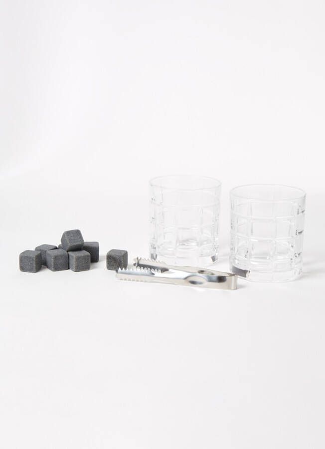 Whiskey set van het merk Leopold Vienna is vervaardigd van glas, roestvrij staal en graniet- De set is ideaal voor het serveren van whiskey- De set bestaat uit twee glazen, granieten ijsblokjes en een tang- Leg de ijsblokjes twee uur voor gebruik in de vriezer- Gebruik vervolgens de tang om ze in het glas te plaatsen-.