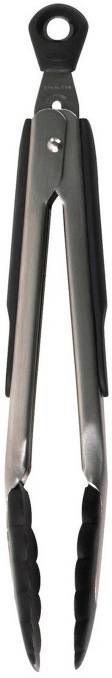 Oxo serveertang van roestvrij staal. Dit model is uitgevoerd met kunststof uiteinden, waardoor hij geschikt is voor gebruik in pannen met een anti-aanbaklaag. De serveertang is afgewerkt met soft grip grepen en heeft een slot, zodat hij gemakkelijk dichtgeklapt op te bergen is. Deze serveertang van Oxo is vaatwasmachinebestendig.