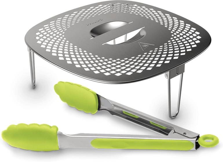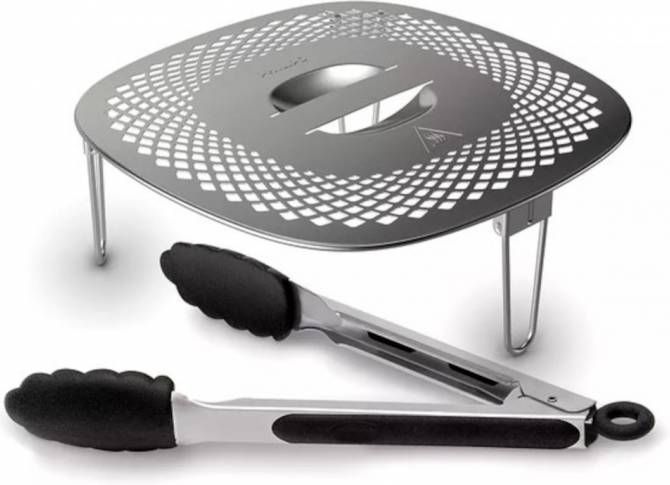 Maak je favoriete snacks met deze handige snackset voor de Philips Airfryer XXL. Geniet van gezonde snacks die door de deksel goed op zijn plek blijven terwijl ze bereid worden met de Rapid Air technologie van Philips. Je pakt de snacks gemakkelijk op et de bijgeleverde tang. Je kunt de deksel makkelijk opbergen door de opklapbare pootjes.