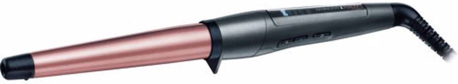 Uitgevoerd in modieus lichtgrijs en roségoud creëert de stijltang van 19-25 mm doorsnee indrukwekkende krullen en verleidelijke slag. Dankzij het ontwerp van de Keratin Protect Wand style je je haar moeiteloos van de aanzet tot de punten: met behulp van de verbeterde griptechnologie glijdt het haar niet meer van de tang af.Selecteer de PRO+-stand van 185 °C om je haar gezonder te stylen: ook met de meest fijne, tere haren bereik je voortaan een oogverblindende en langhoudende look.Draai de krullen weg van je gezicht voor de bekende seventies-look, of laat je lokken in een retro slag langs je gezicht vallen. Mix en match verschillende krulstijlen voor een volumineuze rock 'n roll-uitstraling. De perfecte zondagochtendcoupe creëer je met losvallende krullen, en steek ze van achteren op voor een frisse, nonchalante bob. De Remington Keratin Protect-collectie bestaat uit innovatieve stylingapparaten die je haar gezond en sterk houden, en de geavanceerde keramische platen verrijkt met keratine en amandelolie zorgen voor zachte, glanzende lokken.
