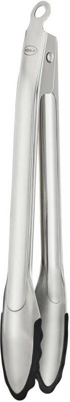 Gourmettang van het merk Rösle- De tang heeft een gepatenteerd lock-systeem waarmee het mogelijk is om met 1 hand de tang te openen en te sluiten- Knijp in de tang als deze langs je lichaam hangt om te sluiten en open deze met een simpele kneep als je deze met het siliconen gedeelte in de lucht houdt- De tang heeft een rand van siliconen- Hierdoor worden pannen niet beschadigd- Hittebestendig tot 260 graden en vaatwasmachinebestendig-.