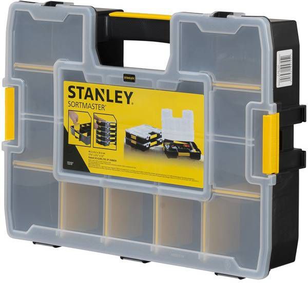 De Stanley SortMaster Organizer is een organizer met uitneembare scheidingen met 1024 configuratie mogelijkheden. Deze organizer is handig om gereedschappen, zelfs hamers en kleine onderdelen op te bergen. Het deksel is goed vergrendelbaar en het dekselstructuur houdt alle kleine onderdelen op hun plaats. De afmeting van deze organizer is 43 x 9 x 33cm.