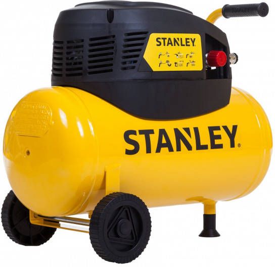 Stanley Compressor Dn200/8/24 Luchtcompressor 8 Bar 24l 180l/min Met Handvat En Wielen Olievrij Geel